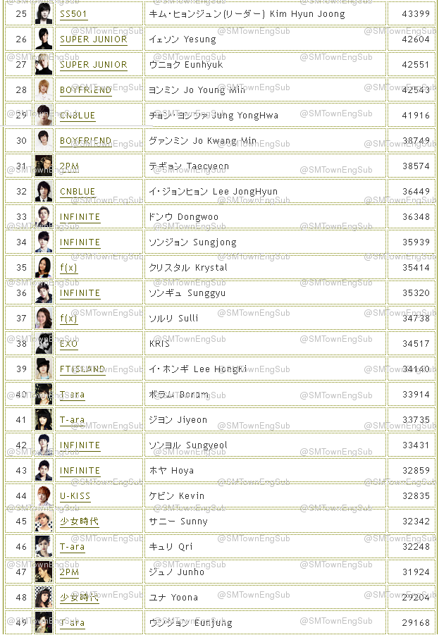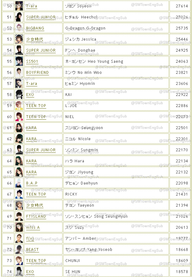 2013 оны 5-р сарын байдлаар японд хамгийн алдартай 100 Idol-уудыг танилцуулж байна...